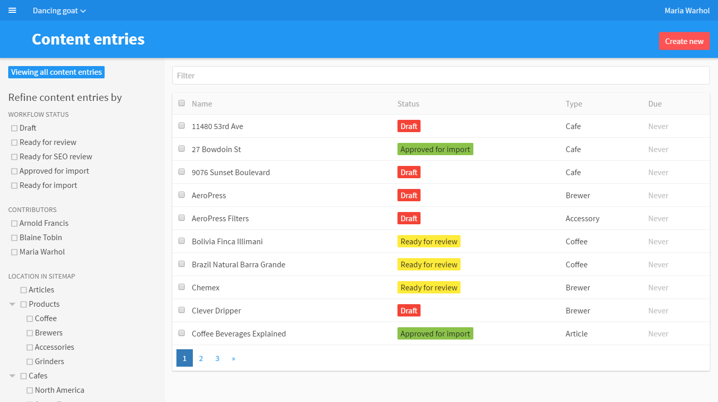- dá se nadefinovat struktura obsahu (sitemapa, struktura dat, ..)
