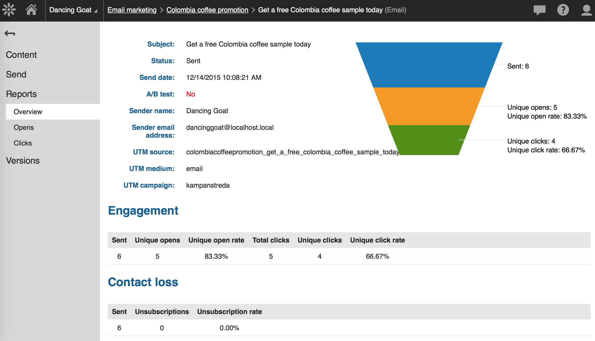 - reporting s kompletním funnelem (emaily poslané, otevřené, počty kliků, jejich výpis..)